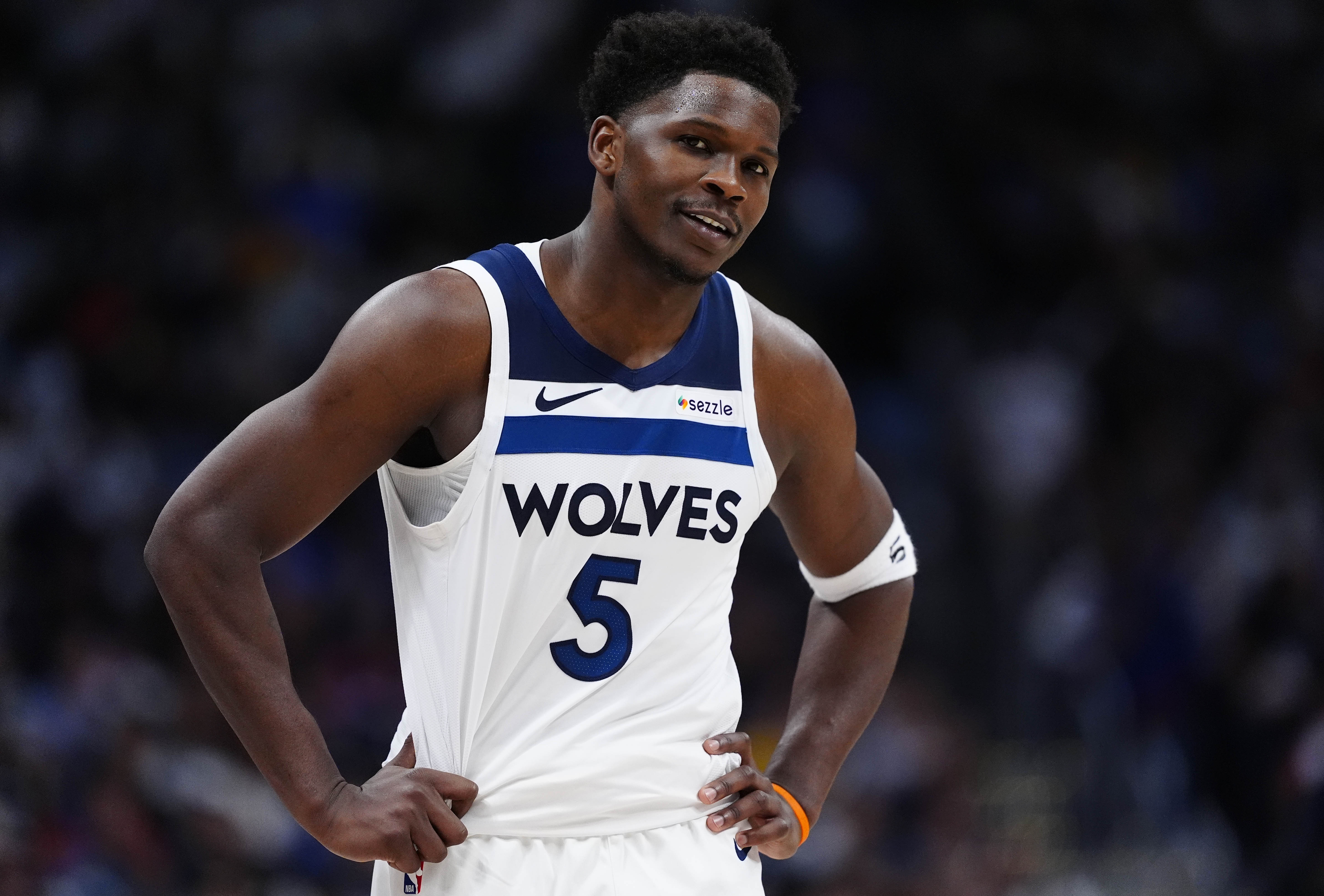 上半场,带伤出战的森林狼球星爱德华兹表现并不好,进攻端毫无手感,半场结束前更因为左膝受伤离场,打了17分半,投篮8中1,三分球3中1,罚球2中2,仅拿到5分3篮板,正负值-3。
