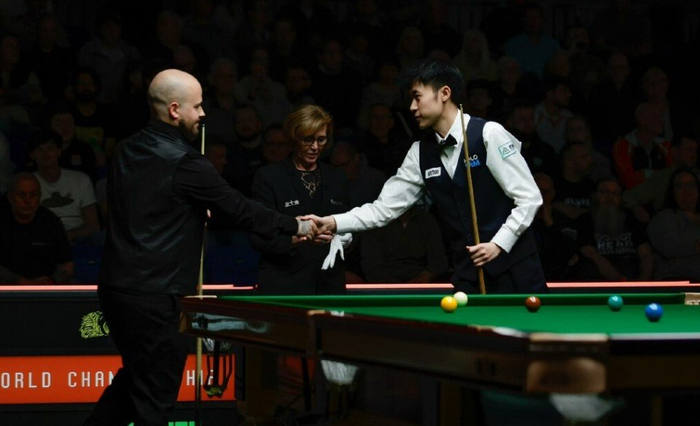 常冰玉在第9局迎来了自己的高光时刻,他通过长台进攻上手,围绕黑球开始展开攻势。在击打第7颗黑球完美K球之后,场面变得简单起来。此后常冰玉稳扎稳打,完成了这杆147分满分杆。在第一阶段结束后,5-4领先于布雷塞尔。